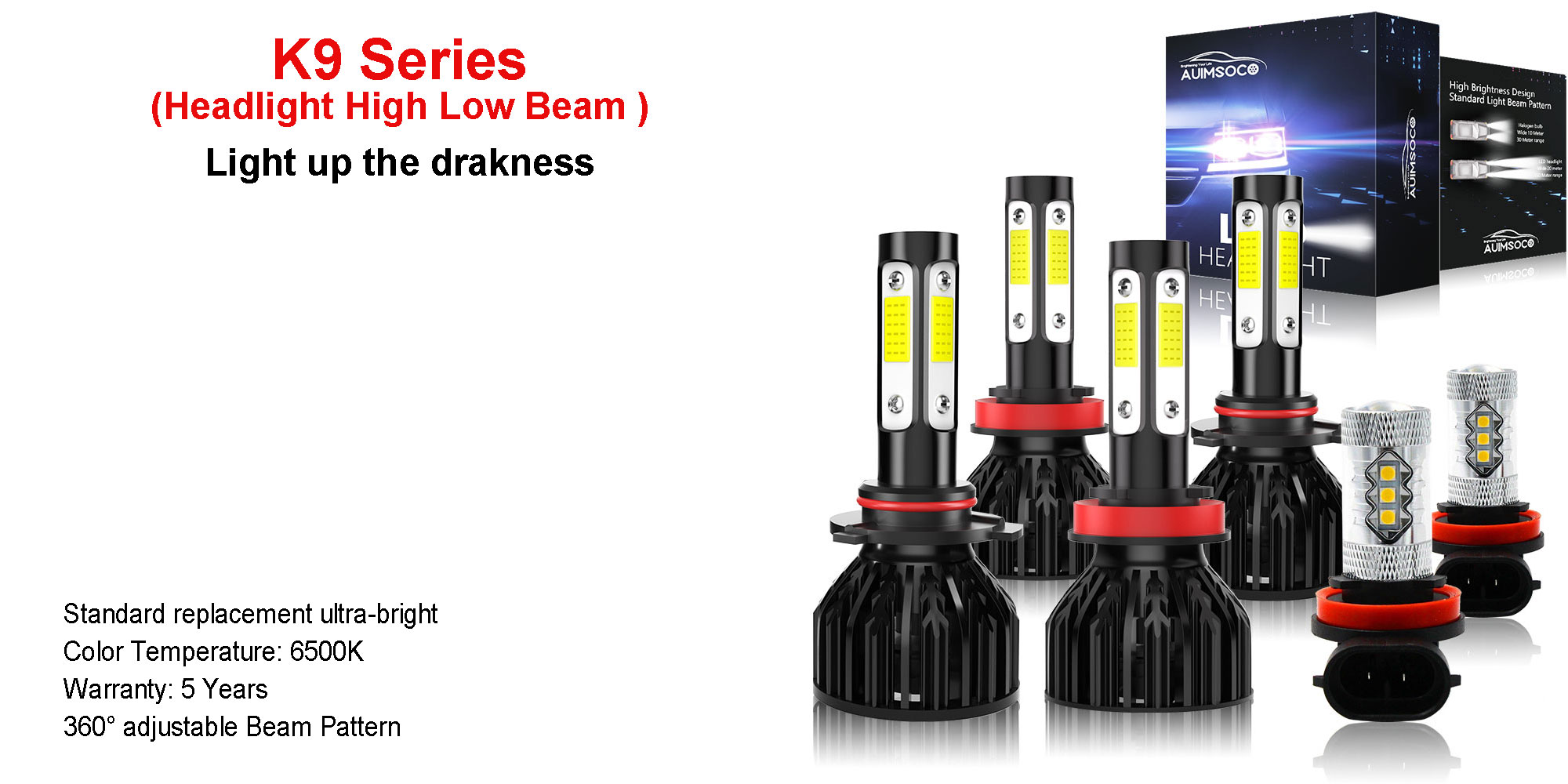 【Brightness 300%】AUIMSOCO 9005 H11 light bulbs uses the latest upgraded version of the chip, 300% brighter than halogen bulbs, 36000LM 6500K Xenon White, higher brightness, you can enjoy a brighter, safer driving process!