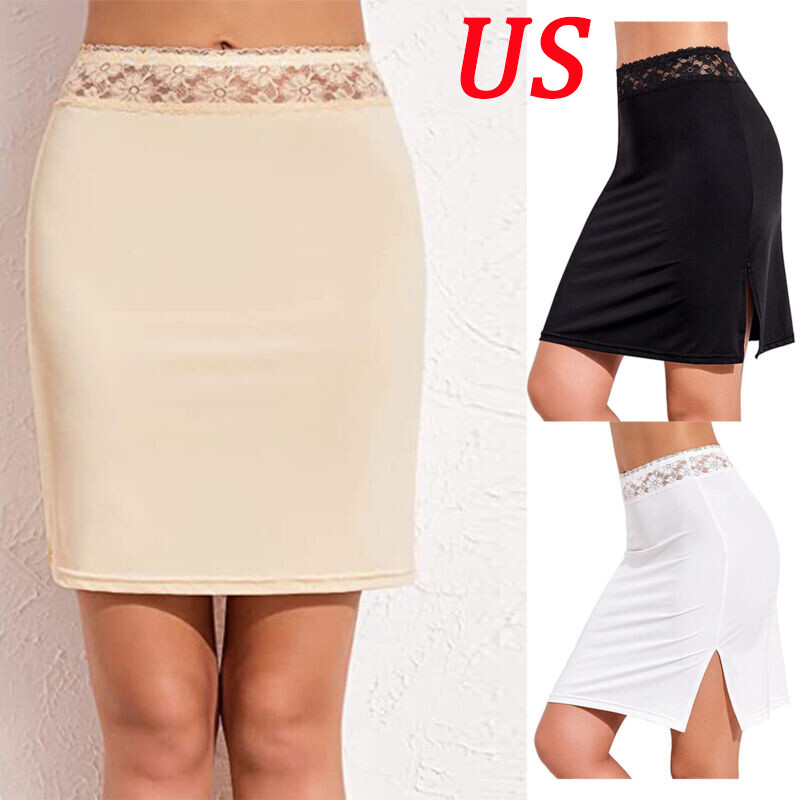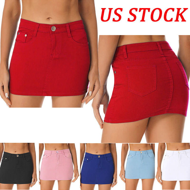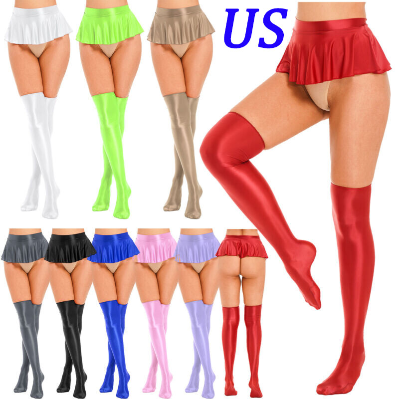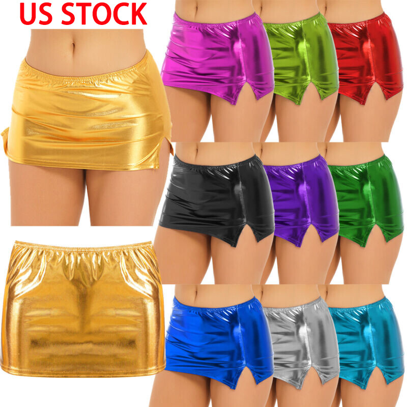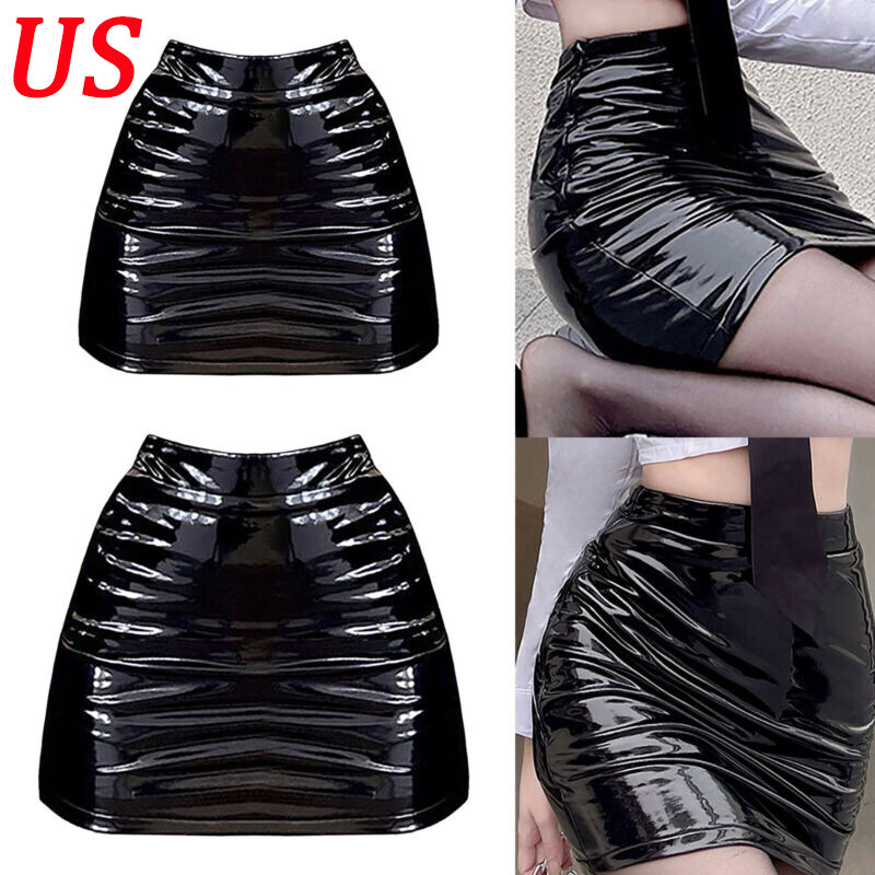 Womens Glossy Solid Color Pencil Skirt Casual High Waist Elastic Waistband Miniskirt.