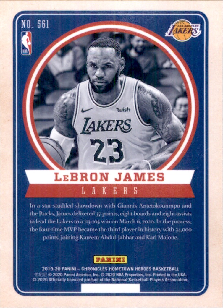 | 2019-20 Panini Chronicles LeBron James Los Angeles Lakers #561 |