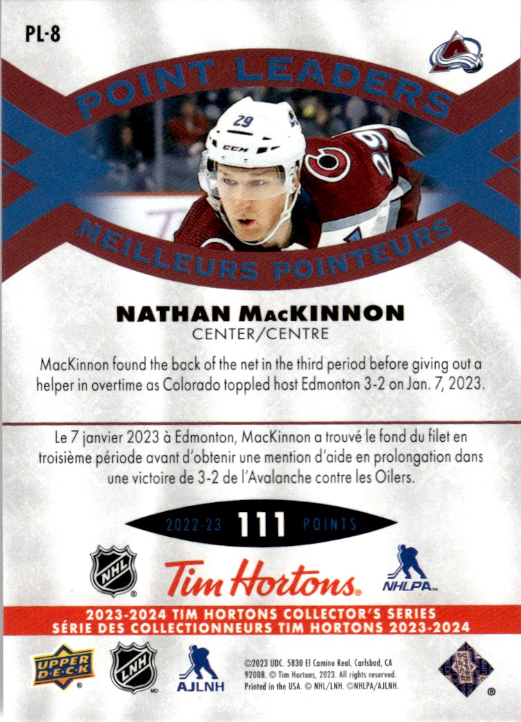 | 2023-24 Upper Deck Tim Hortons Point Leaders Nathan MacKinnon Colorado Avalanche |