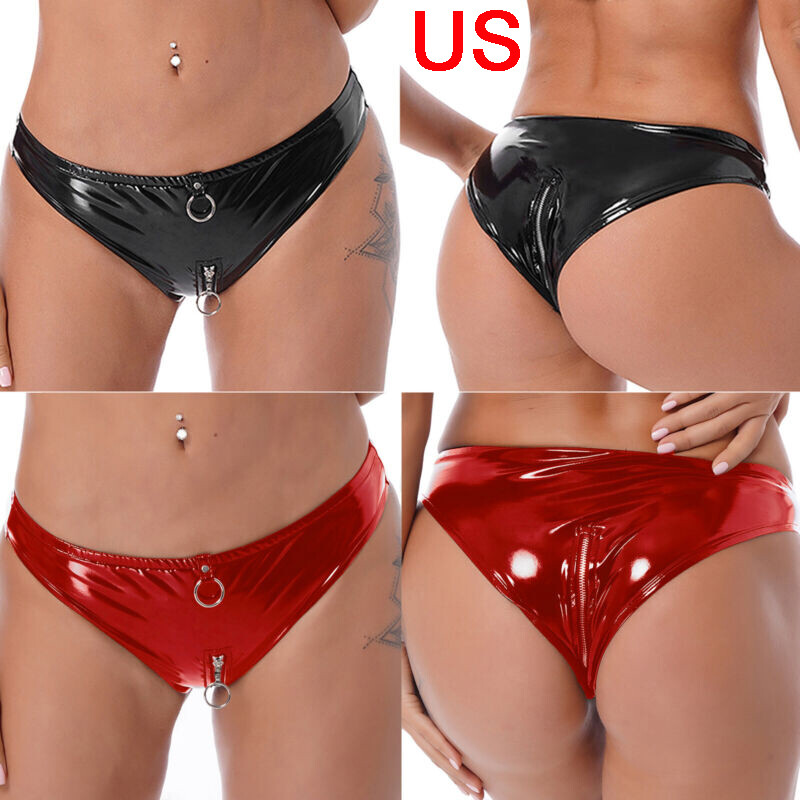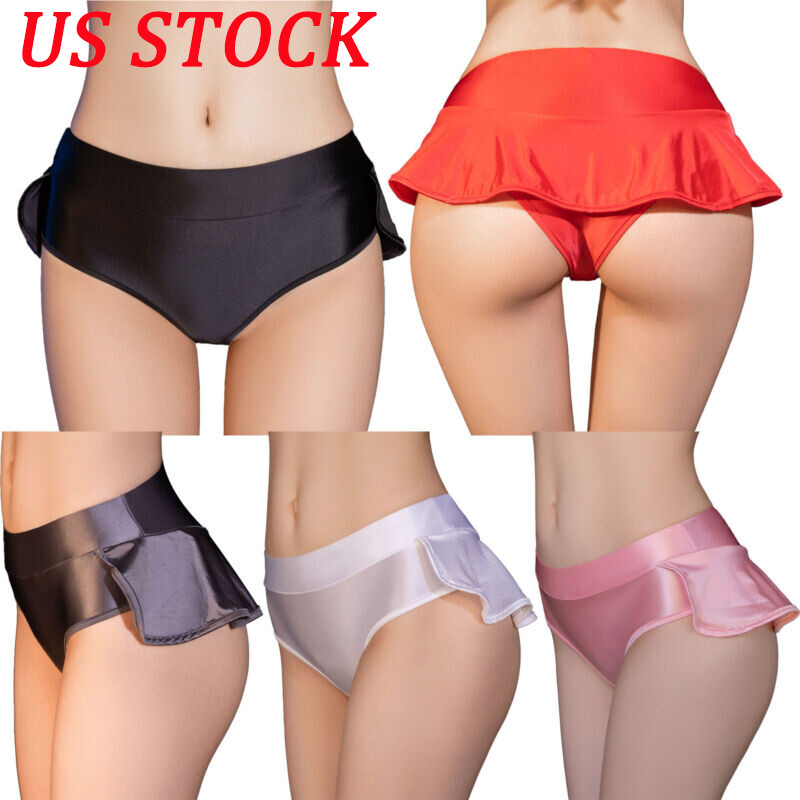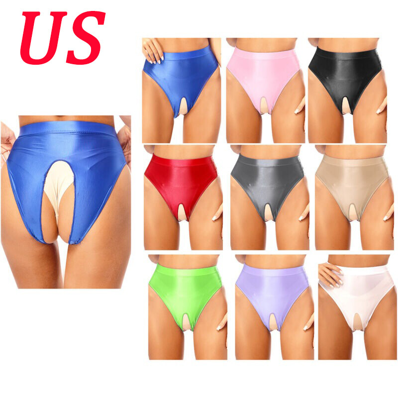 Womens Glossy Solid Color High Waist Briefs Underwear Swimsuit Bottom.