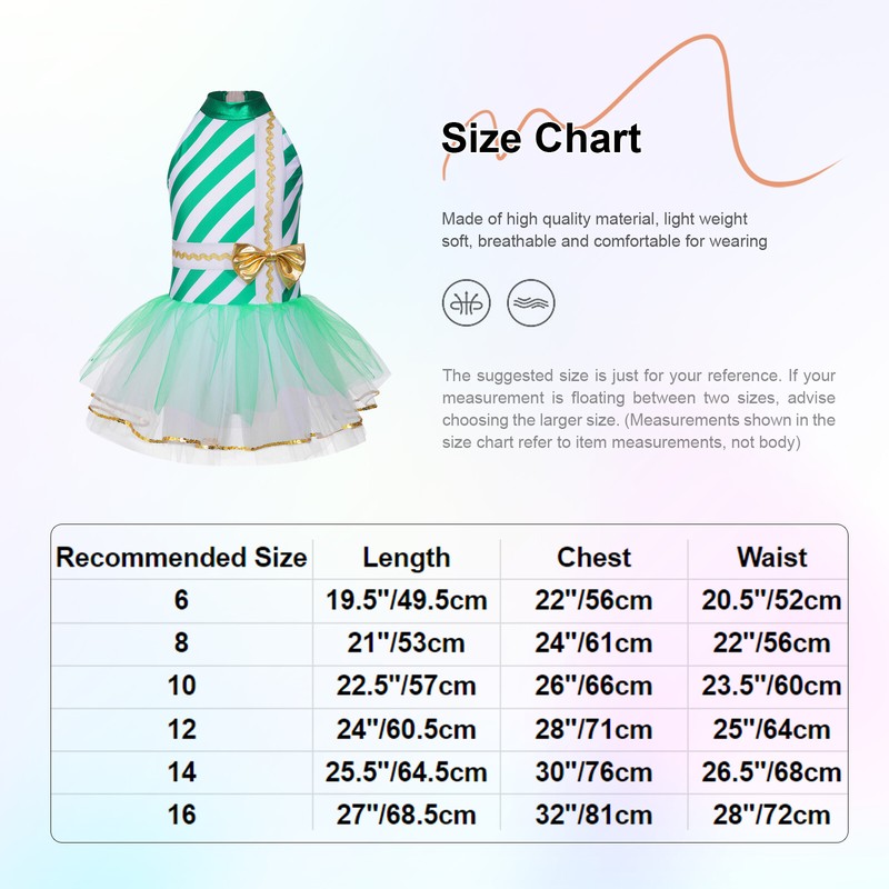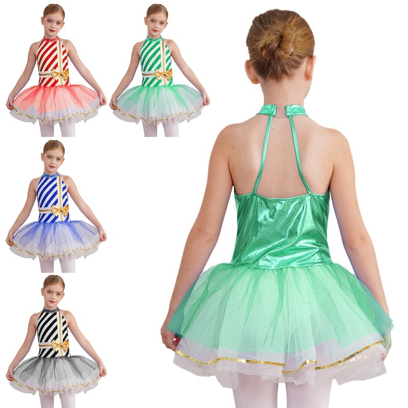 Kids Girls Christmas Striped Ballet Dance Tutu Dress Sequins Ice Skating Dresses
