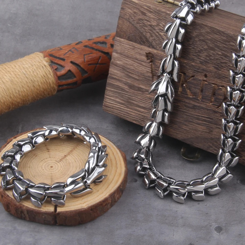Name: Viking Cast Cuban Chain Male Thin Stainless-Steel Bracelet And Necklace