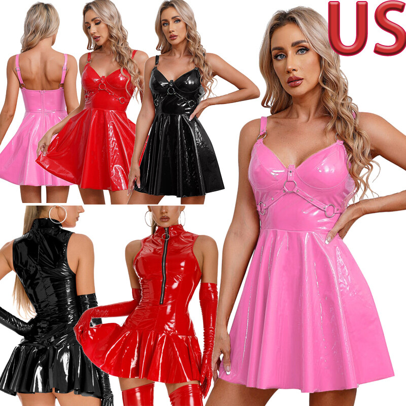 Women's Leather Crop Tank Top Sleeveless Short Vest Streetwear Latex Top Corset