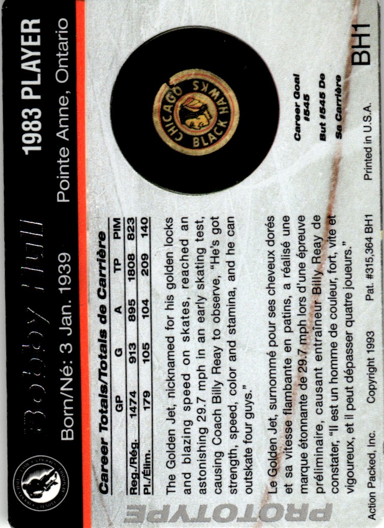 | 1993-94 Action Packed Prototypes Bobby Hull Chicago Blackhawks #BH1 |