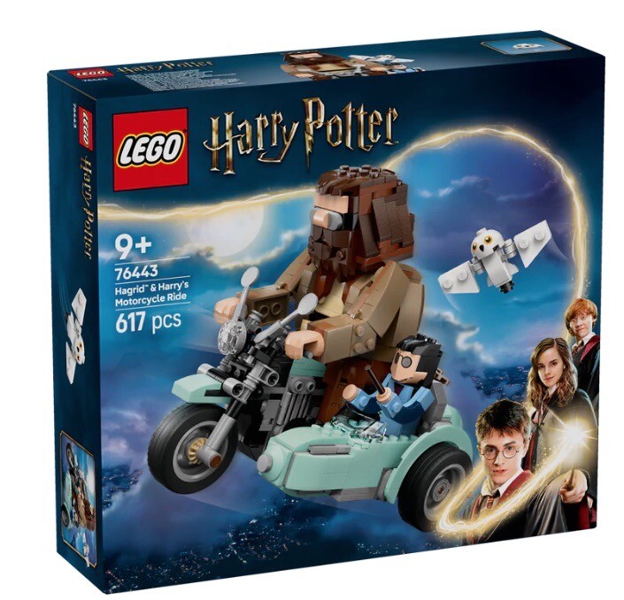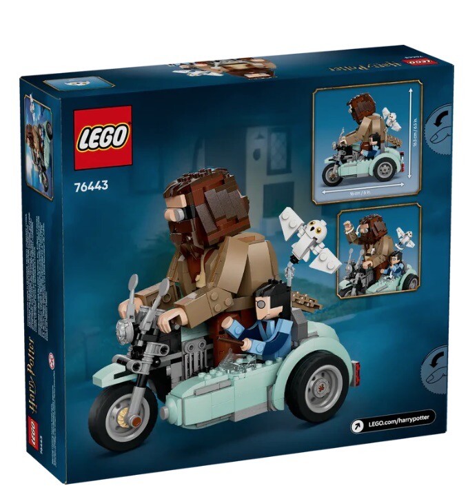 Hold on tight for Hagrid™ & Harry’s Motorcycle Ride (76443) with this magical toy for girls, boys and any fans of the Wizarding World. A cool birthday gift for kids aged 9 and up, this LEGO® Harry Potter™ play-and-display set features built-in, posable Harry Potter, Hedwig™ and Rubeus Hagrid toy figures riding on a motorbike and in its sidecar. The LEGO brick-built vehicle toy’s wheels turn so kids can play out iconic Harry Potter and the Deathly Hallows™ scenes, or the model can be displayed as striking Harry Potter room decor.