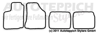 Die Fußmatten werden für Sie passgenau in Wächtersbach/Hessen gefertigt und mit unserem Versandpartner DHL zu Ihnen versendet. Es handelt sich hierbei nicht um Lagerware - alles wird für Sie unter Berücksichtigung Ihrer Farbwünsche für Sie gefertigt.