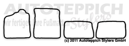 Die Fußmatten werden für Sie passgenau in Wächtersbach/Hessen gefertigt und mit unserem Versandpartner DHL zu Ihnen versendet. Es handelt sich hierbei nicht um Lagerware - alles wird für Sie unter Berücksichtigung Ihrer Farbwünsche für Sie gefertigt.
