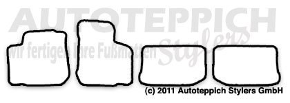 Die Fußmatten werden für Sie passgenau in Wächtersbach/Hessen gefertigt und mit unserem Versandpartner DHL zu Ihnen versendet. Es handelt sich hierbei nicht um Lagerware - alles wird für Sie unter Berücksichtigung Ihrer Farbwünsche für Sie gefertigt.