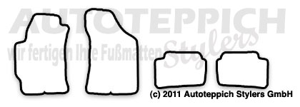 Die Fußmatten werden für Sie passgenau in Wächtersbach/Hessen gefertigt und mit unserem Versandpartner DHL zu Ihnen versendet. Es handelt sich hierbei nicht um Lagerware - alles wird für Sie unter Berücksichtigung Ihrer Farbwünsche für Sie gefertigt.