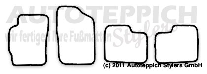 Die Fußmatten werden für Sie passgenau in Wächtersbach/Hessen gefertigt und mit unserem Versandpartner DHL zu Ihnen versendet. Es handelt sich hierbei nicht um Lagerware - alles wird für Sie unter Berücksichtigung Ihrer Farbwünsche für Sie gefertigt.