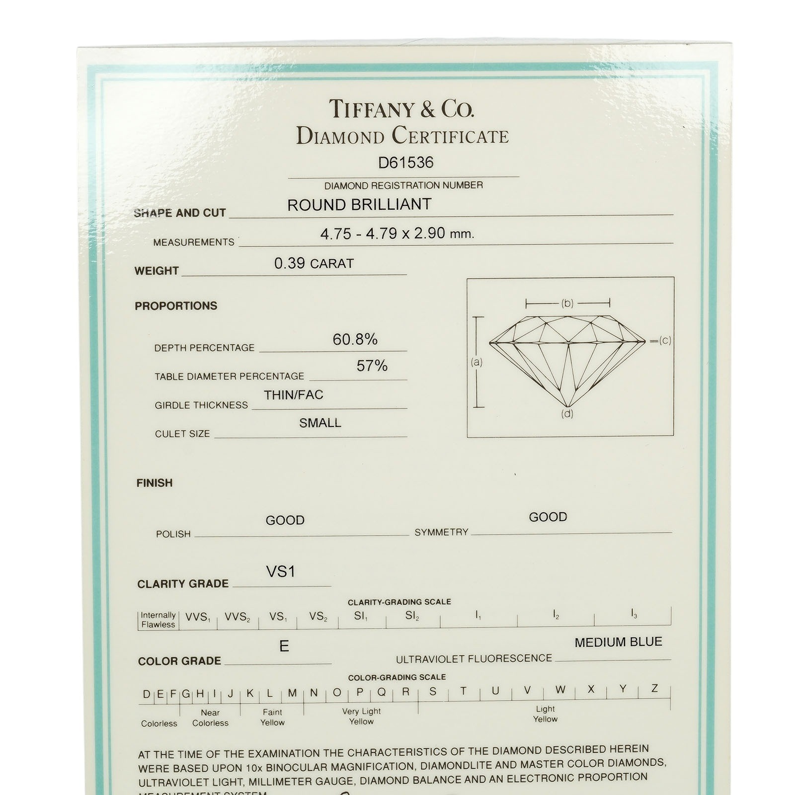 | Model Number | 0.39ct VS1/E/GOOG |