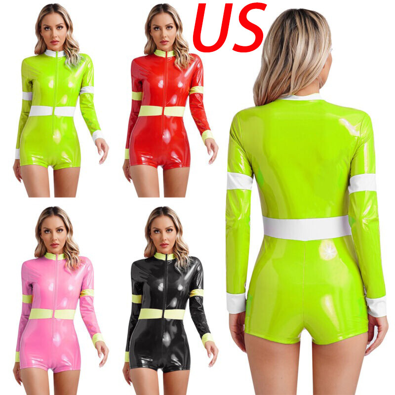 Patent leather catsuit with front zipper closure, you can pull the zipper down to the chest for a hot look but not over-exposure.