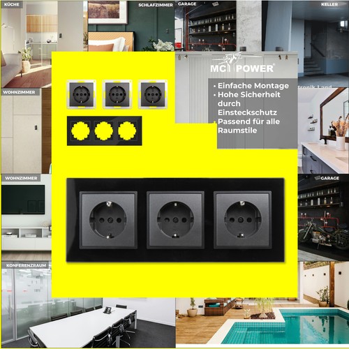 - 3 x Schutzkontakt-Steckdose McPower "Flair" 250V~/16A,UP, Schraubanschluss, Einsteckschutz, matt anthrazit