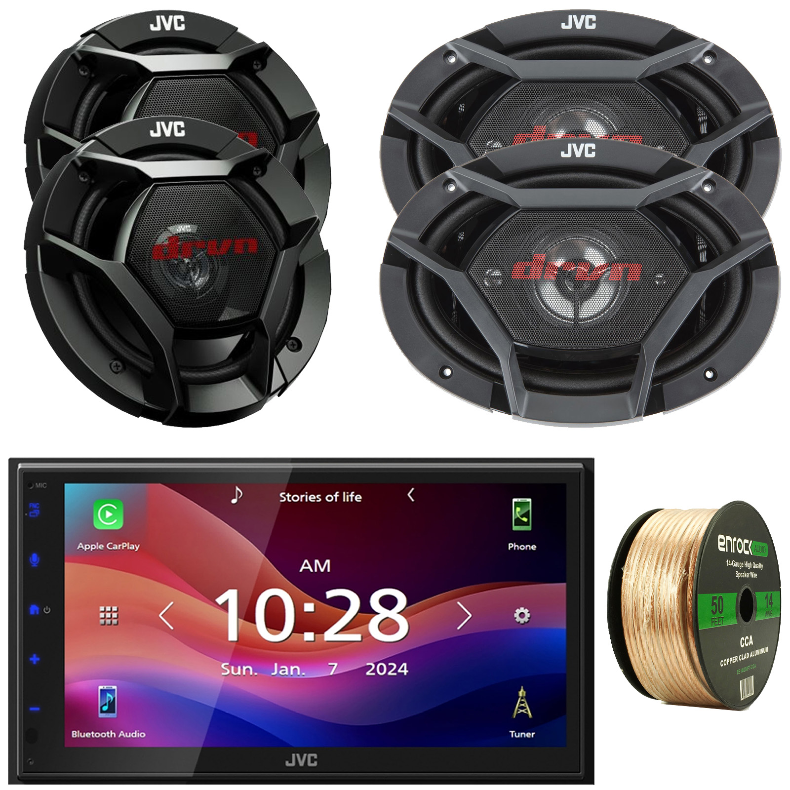 PACKAGE BUNDLE INCLUDES: JVC KW-M690BW 6.8" Capacitive Monitor Single-DIN Bluetooth USB/MP3 Digital Media Shallow Chassis Multimedia Receiver, 2x JVC CS-DR621 drvn DR Series 6.5" 300 Watts Max Power 2-Way Coaxial Car Audio Speakers, 2x JVC CS-DR6941 6x9" 550 Watts Max Power 4-Way Coaxial Automotive Speakers, 14 Gauge 50 Feet Speaker Wire