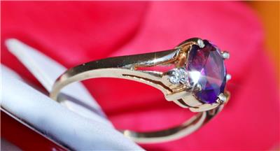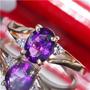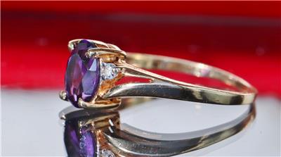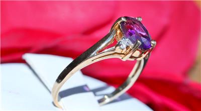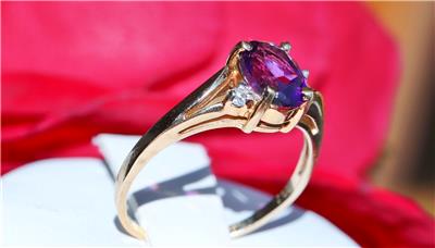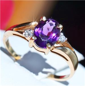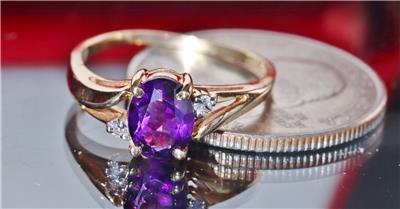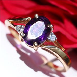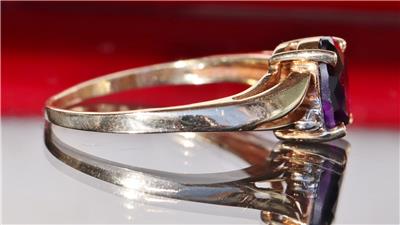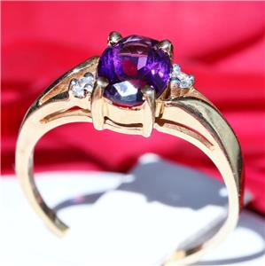 Handmade Vintage 10k Yellow Gold 1.0ct Amethyst and Diamond size: 6.5 Ring, 2.0 grams