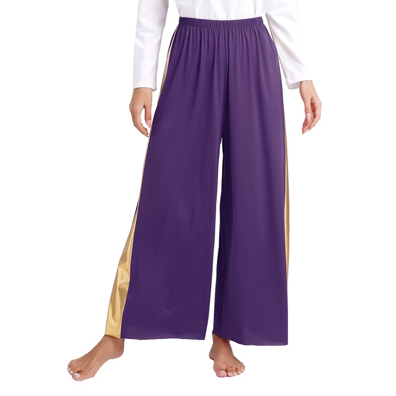 Women Praise Dance Palazzo Pants High Waist Loose Metallic Patchwork Dancewear