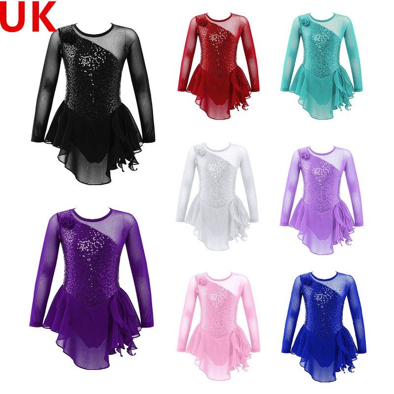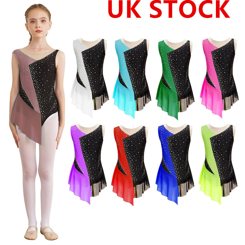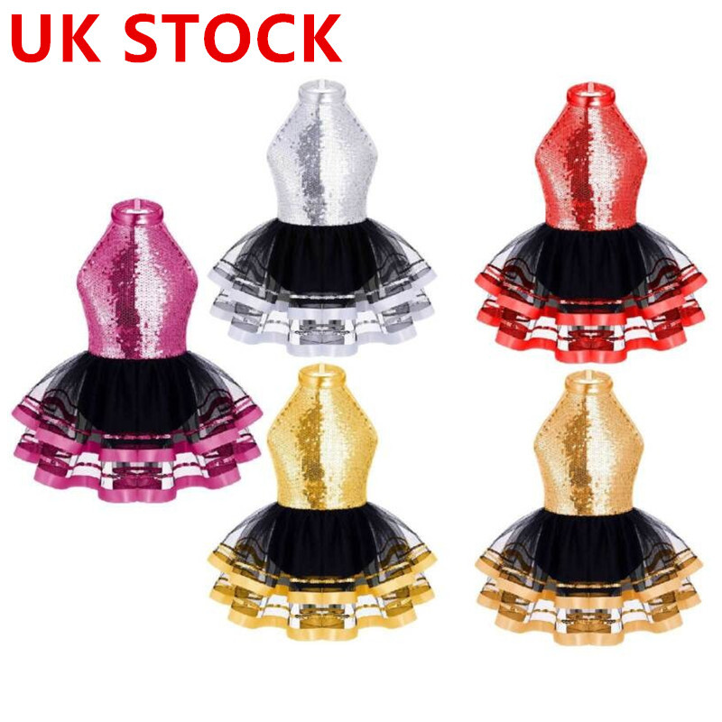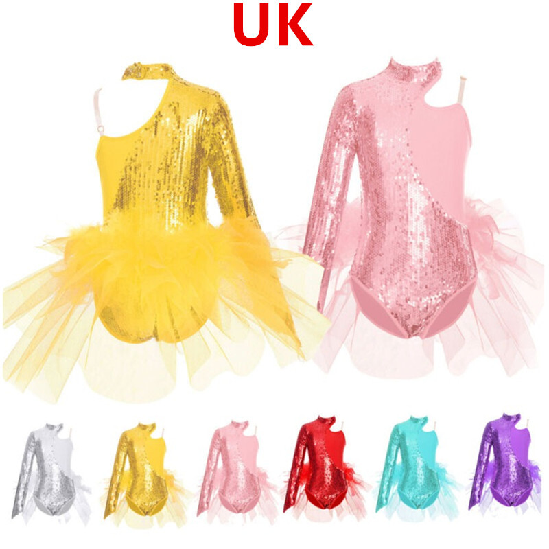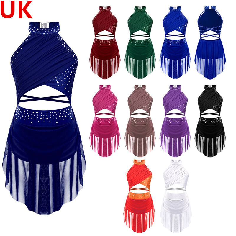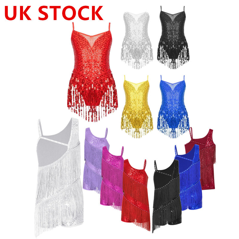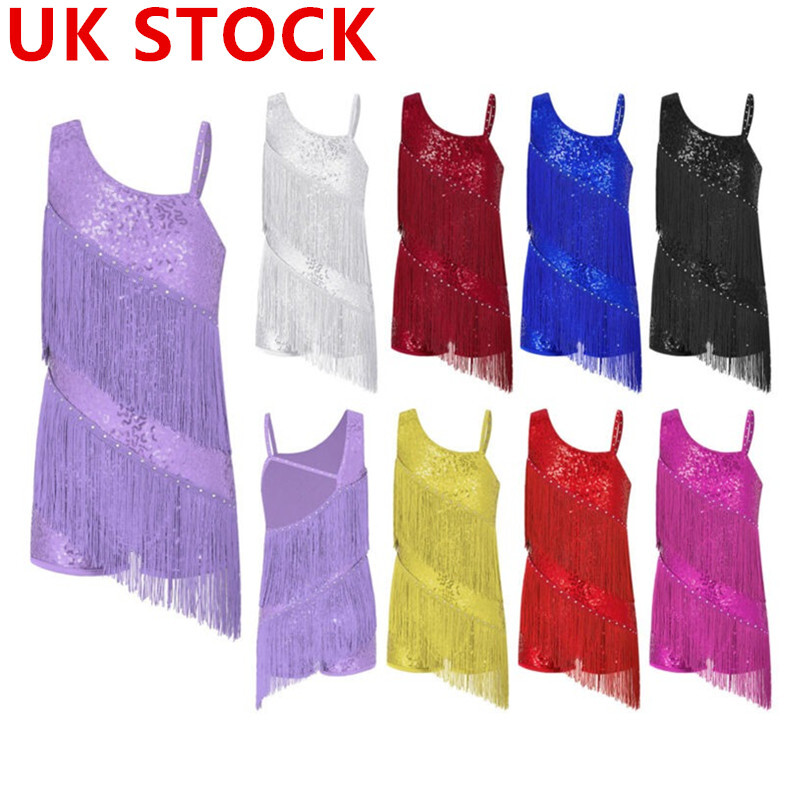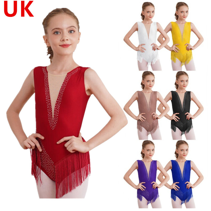 UK Girls Tassel Latin Dance Dress Gymnastics Leotard Jazz Figure Skating Costume
