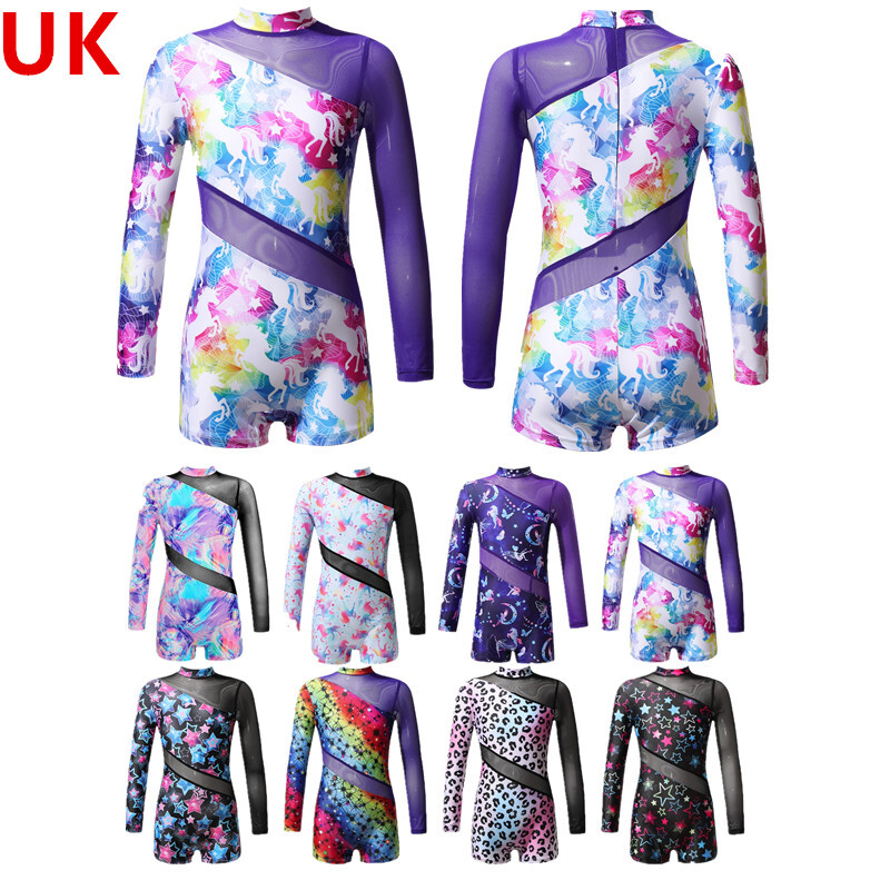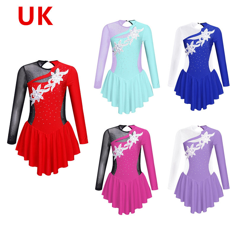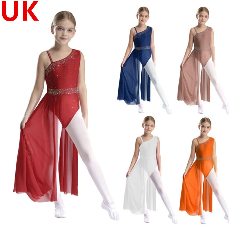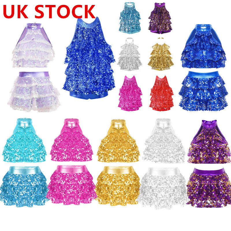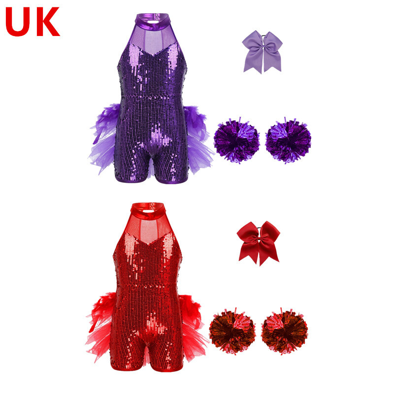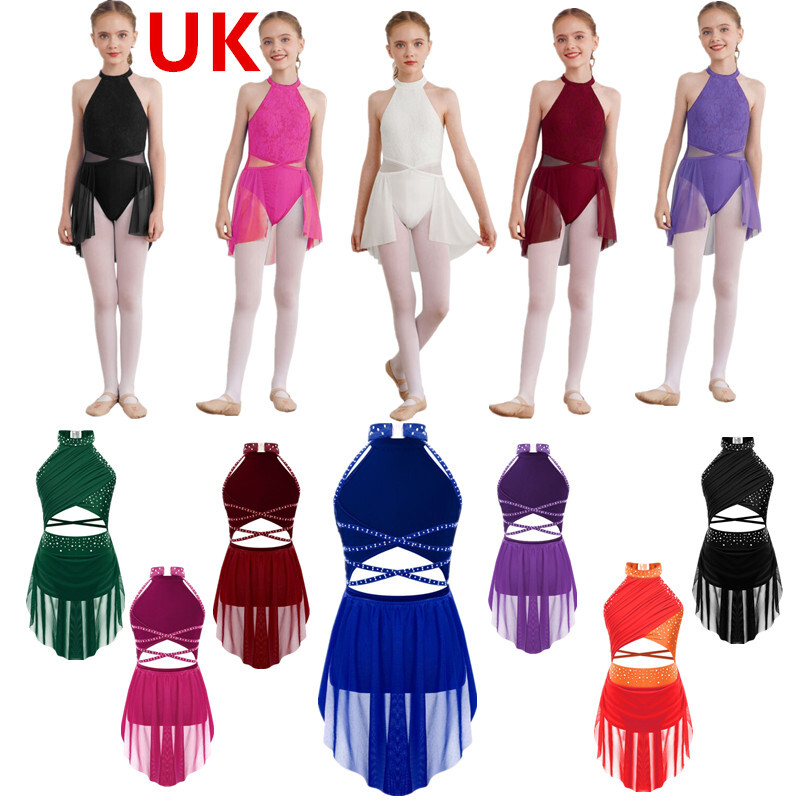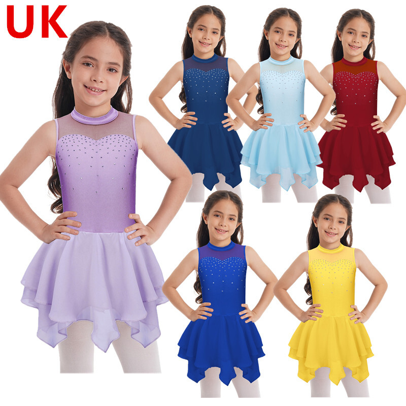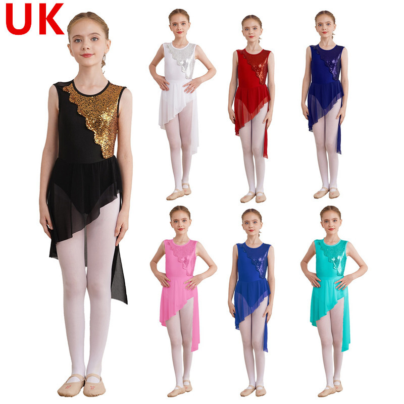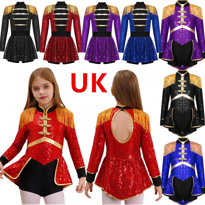 UK Girls Tassel Latin Dance Dress Gymnastics Leotard Jazz Figure Skating Costume