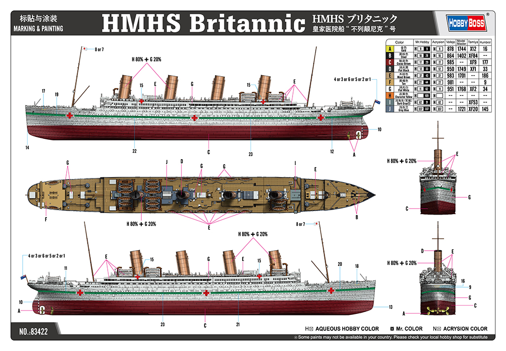 HMHS Britannic, under the White Star Line. White Star is a company in which an Olympic class cruise is RMS Olympic and RMS Titanic's sister ship.