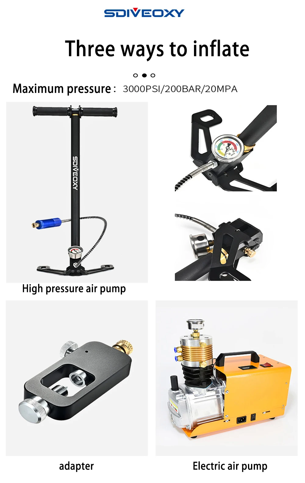 Oxygen cylinder pressure should not exceed 20 MPa (i.e. 200BAR or 3000PSI shown on the pressure gauge) before boarding the aircraft, please separate the breathing valve from the bottle, you need to press the top to release the pressure after the completion of the bottle separation.