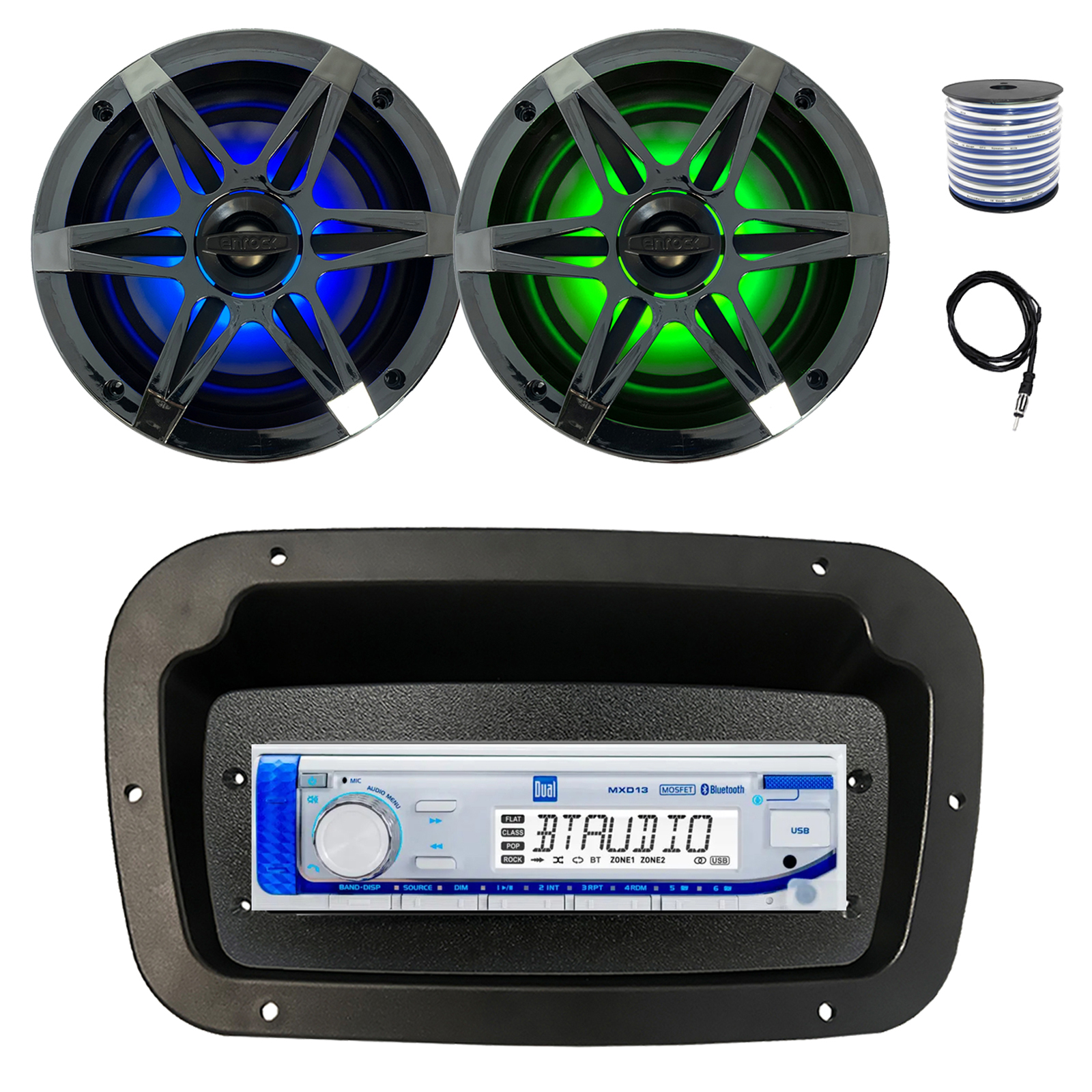 Dual Marine Radio, Spa Bezel,Adapter,Antenna,Wire, 2x 6.5" 120W LED Speakers