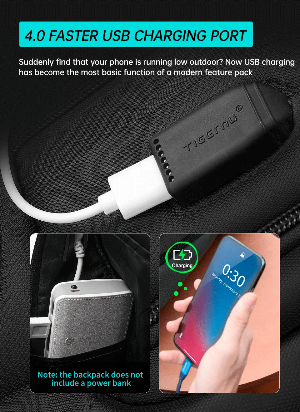| Features: double layer four tooth anti theft zipper, with free padlock back part, with soft breathable mesh separate padded laptop compartment, fit up to 15.6" laptop removable USB charging port quality oriented, superior abrasive resistance better than commom material