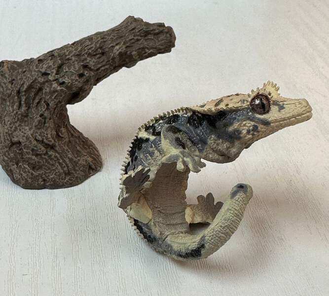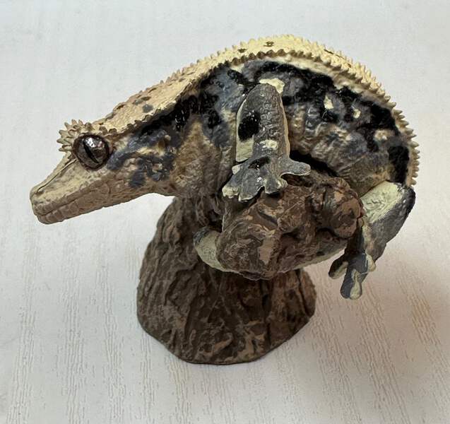 Crested gecko Lizard Reptile figurine figure model ring with stand C.