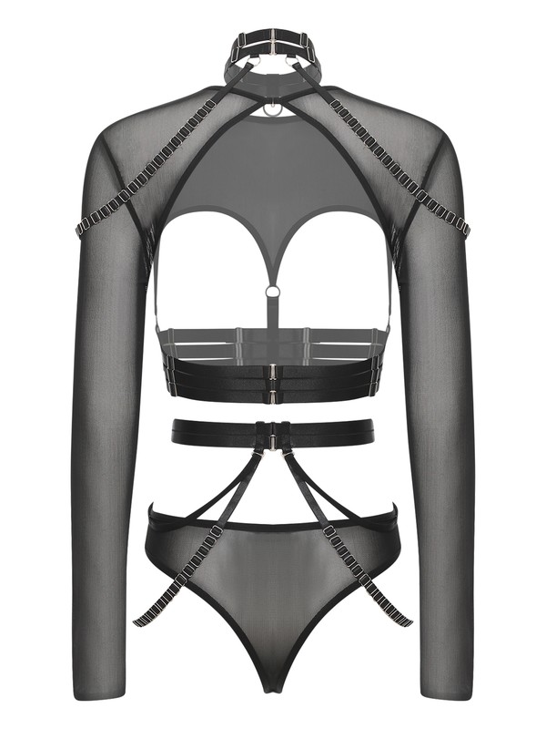 Long sleeves, cropped top and thong set for women, front cutout fully show your bust, making you super attractive.
