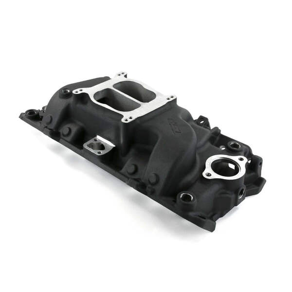 TSP's dual-plane high-performance intake manifold for the big block Chevy is ideal for street performance applications, with a design that improves throttle response, as well as power and torque over a wide rpm range - idle to 6,000. It is cast from lightweight aluminum and features a low profile for ideal hood clearance. Additional provisions include dual distributor hold-downs, 4 corner water ports, and a choke block-off kit. Set up for spread bore carbs, this manifold comes with an adapter plate and gasket for use with square bore types.