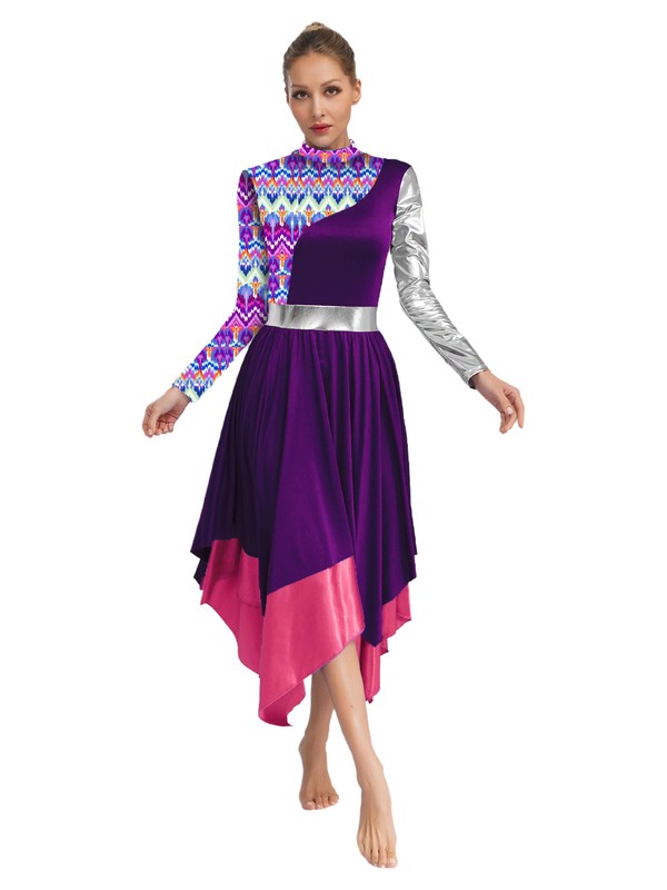 The bodice of the dance dress is designed with stylish prints and color block patchwork to make you the spotlight in any show.