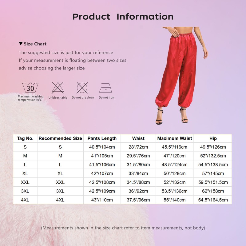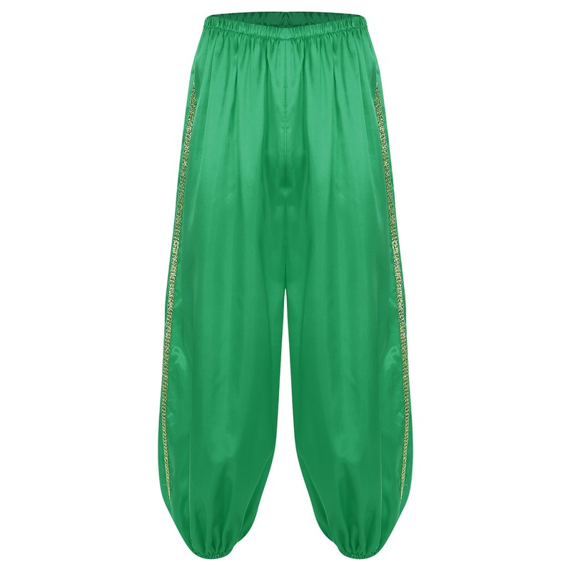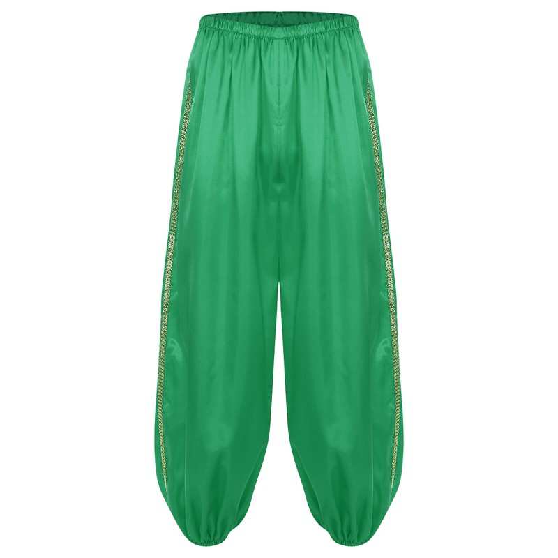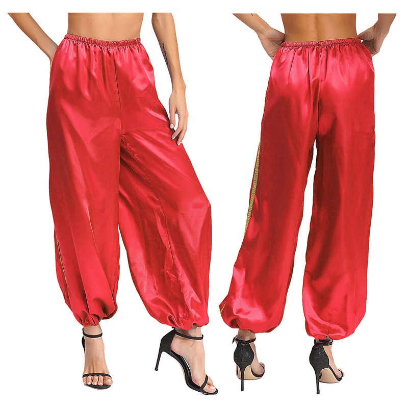 Satiny pants in bright color are perfect for cosplay and dancing party, let people know you are imitating the Arabian princeces immediately.