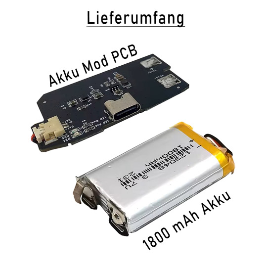 - Der Mod verwendet einen modernen USB-C Anschluss, um den Akku zu laden.