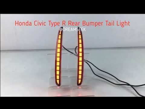 For Honda Civic Type R 2017-2020 LED Rear Bumper Tail Light Brake Lamp w/ Turn Signal Smoke Lens