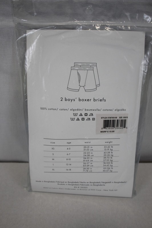 CALVIN KLEIN Boy's 2 Pack Cotton Boxer Briefs size S (6-7).