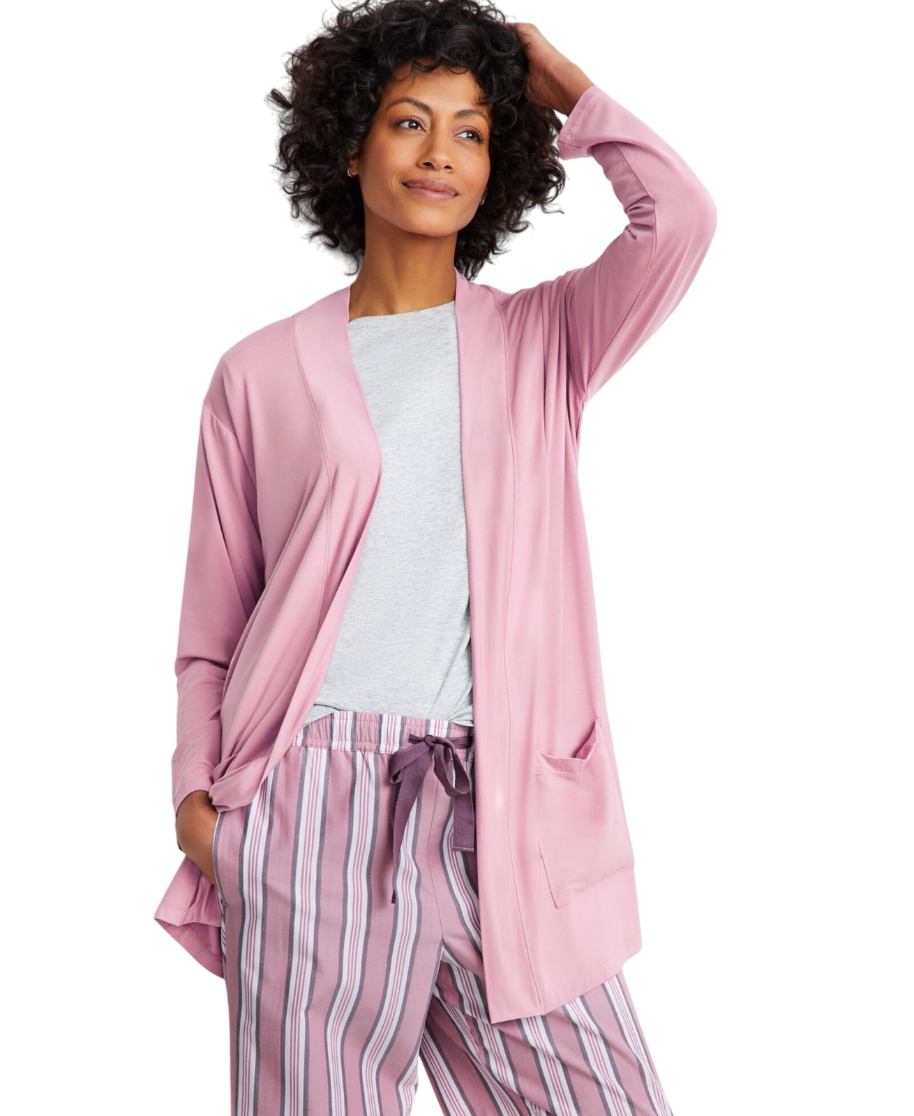 1. State Of Day Womens Knit Open Front Lounge Cardigan Mauve Orchid Purple 2XL