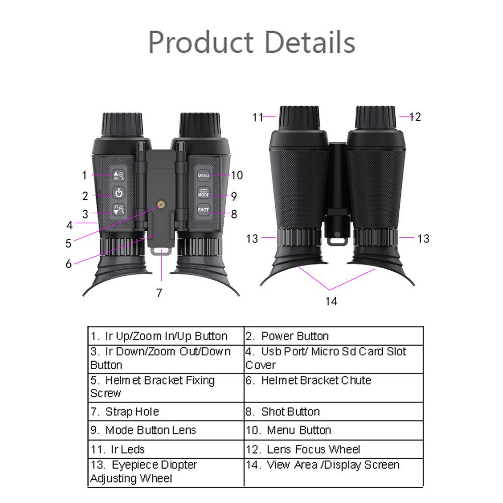 Hauptanwendungsszenarien: Taktik, Aufklärung, Jagd, Sicherheit und Überwachung, Campingspaß, Höhlenerkundung, Nachtangeln und Bootfahren, Tierbeobachtung und -fotografie, etc.