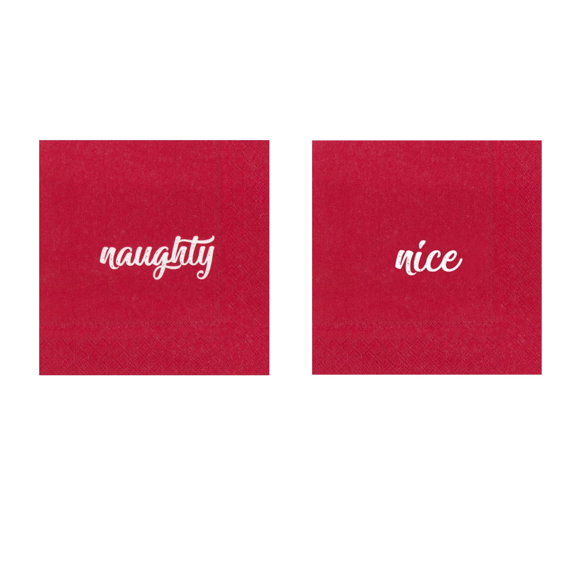 Make your Christmas celebrations more exciting with our Naughty & Nice Design Cocktail Napkins! This set includes a total of 40 napkins, divided into two packages of 20CT each. The design is playful and captivating, featuring red napkins adorned with a white script sentiment that reads "Naughty or Nice." These napkins are the perfect addition to your holiday gatherings, sparking conversations and laughter among your guests. Crafted with care, these napkins are made from high-quality 3-ply paper and measure a convenient 5 x 5 inches when folded. only do they serve as a decorative element, but they also offer durability and functionality. We are committed to responsible production. These napkins are printed in Germany using non-toxic, water-soluble dyes, ensuring they are safe for your family and kind to the environment. Their exceptional absorbency makes them ideal for managing spills and messes. Whether you're hosting a Christmas party, a festive dinner, or a holiday brunch, these Naughty & Nice Design Cocktail Napkins will add a whimsical and entertaining touch to your table settings. Enjoy easy cleanup and embrace the spirit of the season with these charming napkins!