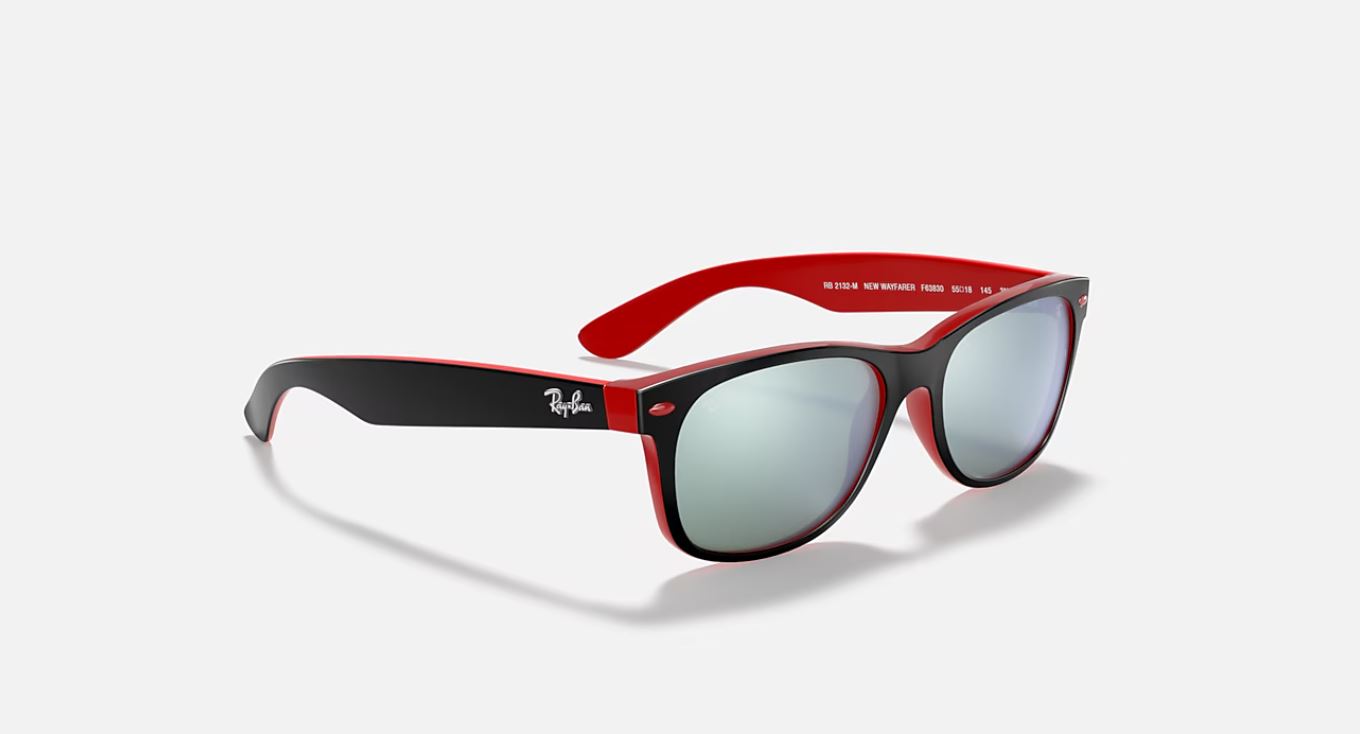 Speed meets style in the Ray-Ban RB2132M Scuderia Ferrari Collection, a motorsport-inspired upgrade of the legendary New Wayfarer. With a sleek Matte Black nylon frame, iconic Ferrari Red accents, and bold Silver Flash mirrored lenses, these sunglasses embody the thrill of Formula 1 and the timeless appeal of Ray-Ban. Designed with the Scuderia Ferrari shield logo on both the lens and temples, this model is a true collector's piece for racing fans and fashion-forward individuals alike.