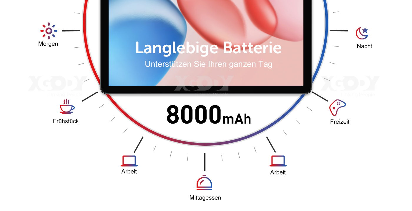 XGODY Q17 Tablet mit 8000 mAh Akku, der bis zu 144 Stunden Standby-Zeit, 11 Stunden Sprechzeit und 16 Stunden Musikzeit bietet und Ihren täglichen Büro- und Unterhaltungsbedarf problemlos erfüllt. Das 11-Zoll-Tablet Q17 unterstützt 5G Dualband-Highspeed-WLAN und bietet ein extrem schnelles Interneterlebnis. Bluetooth Version 5.0 sorgt für eine stabile Übertragung. Darüber hinaus ist Widevine L1 die höchste Schutzstufe, bei der Medien vollständig entschlüsselt und in der Trusted Execution Environment (TEE) verarbeitet werden. Geräte, die L3 unterstützen, können Widevine-geschützte Inhalte in der höchstmöglichen Auflösung wiedergeben. |
