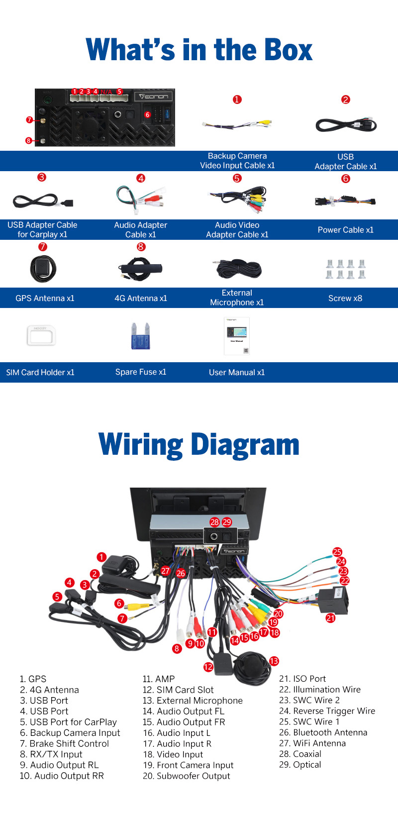 4G LTE & Internet Connectivity? ➡️ We ship the correct regional LTE version based on warehouse location: ● US warehouse → U-Version (USA/Canada/Mexico) ● UK or AU warehouse → E-Version (UK/Europe/Australia/NZ) This ensures the best match with local LTE frequency bands. A SIM card is only needed for built-in mobile data. All key functions—CarPlay/Android Auto, offline GPS, radio, Bluetooth, and USB—work without a SIM. Hotspot/WiFi also works fine in all regions.
