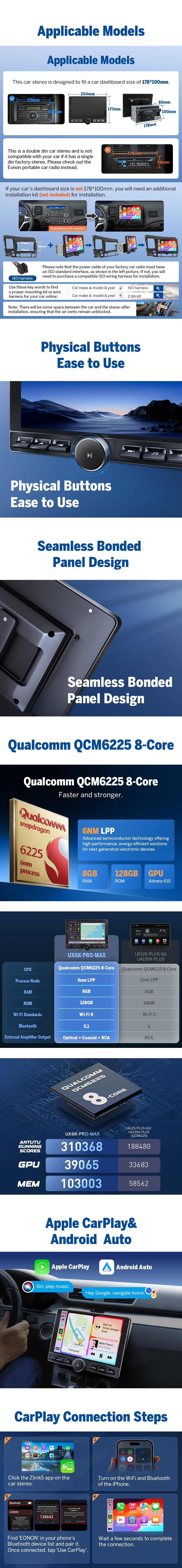 Eonon is a trusted automotive electronics brand, recognized for durable, safe, and reliable infotainment systems. The UX6K PRO MAX is chosen by drivers who want premium sound, enhanced navigation, and modern connectivity, without replacing their vehicle.