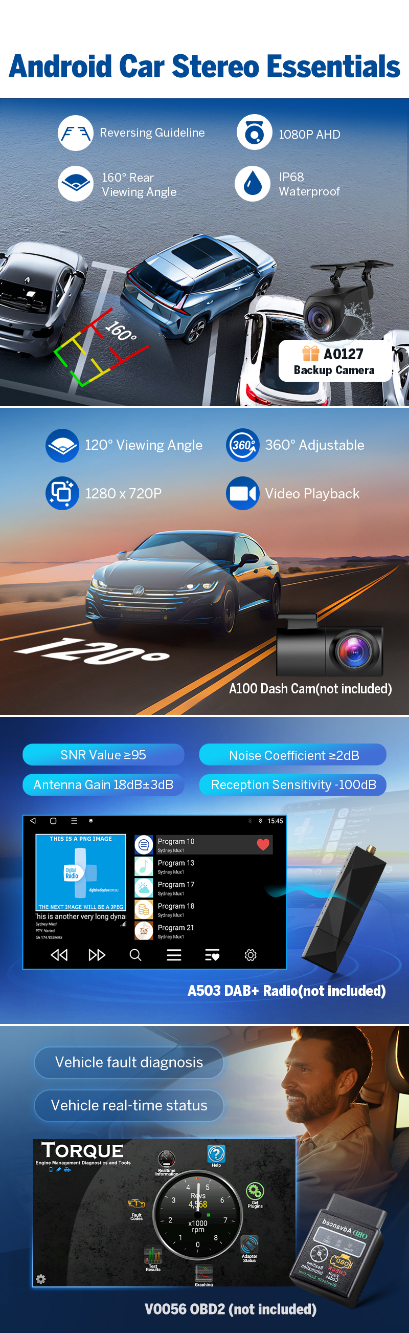 Optional Accessories Compatible – Dashcam, OBD2, DAB+ (sold separately) for full customization.