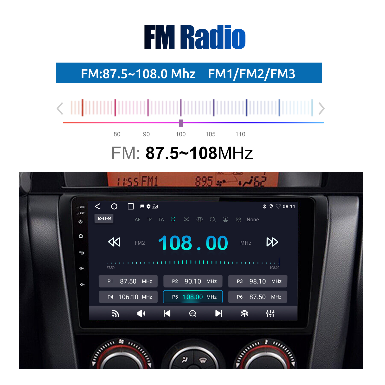 RDS/FM Radio & Bluetooth & ASP Sound Setting: Supports Bluetooth 4.1, with built-in microphone so you can make hands-free calls while driving. Support access to phone book, music playback interface, etc. RDS supported. You can save 18 FM radio stations. Built-in ASP chip. Supports 32-band EQ setting, which can be adjusted according to your personal preference. Which is very similar to your original sound. 4 x 45W amplifier, surround sound and subwoofer output