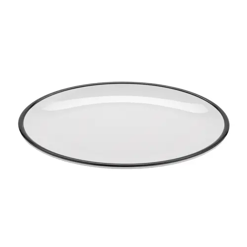 G.E.T. Settlement Bistro White Melamine 12.25" x 9" Plate - 1 Doz - OP-1291-W/BK Features black trim