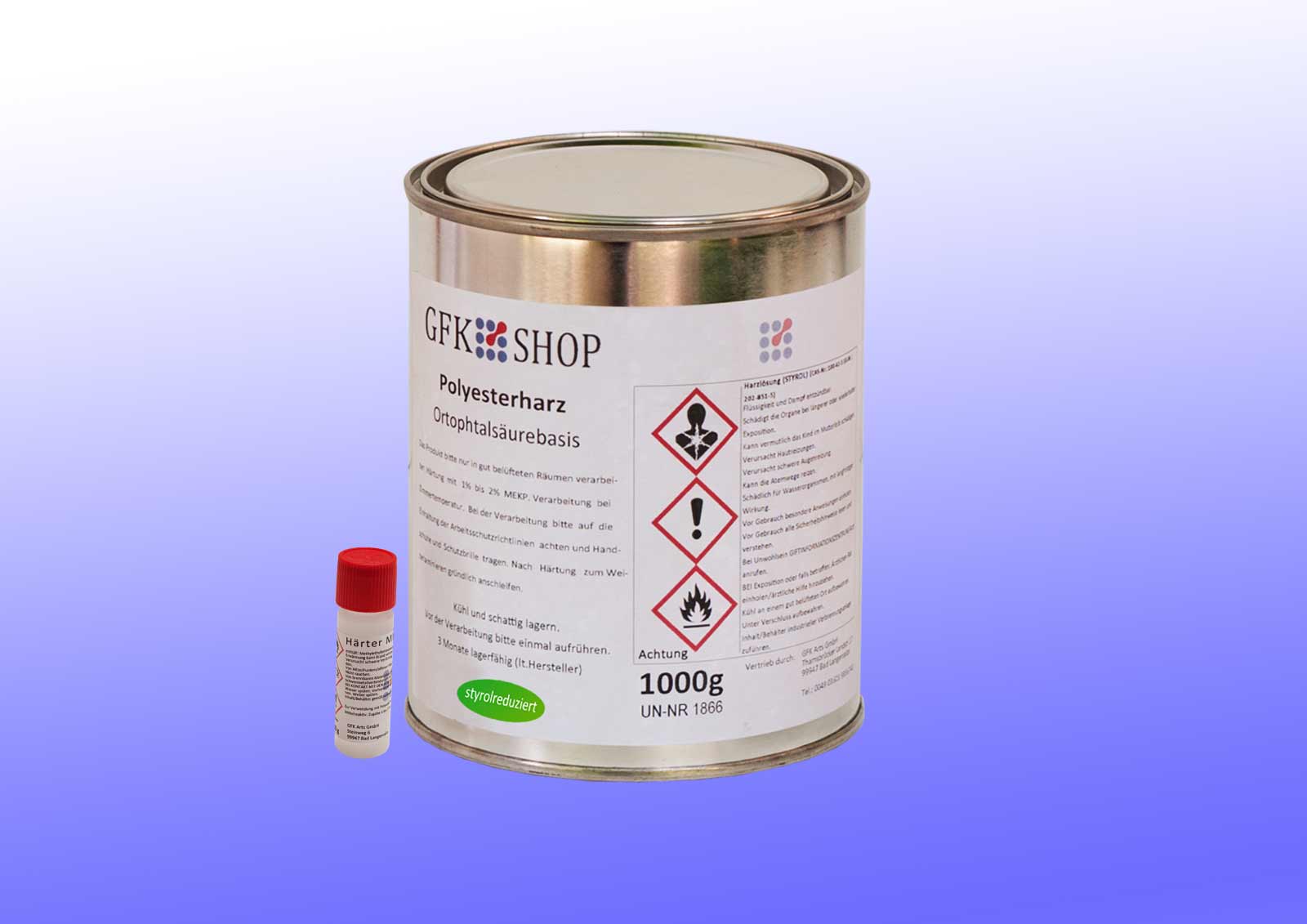 Polysterharz Orthopthalsäure styrolreduziert 1 kg inkl. 20 g Härter MEKP