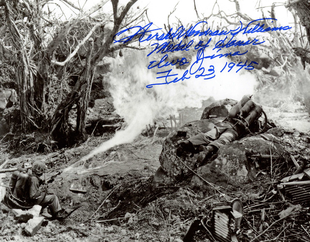 HERSHEL WILLIAMS SIGNED AUTOGRAPHED 14x11 PHOTO FULL NAME SIGNATURE MEDAL OF HONOR BAS