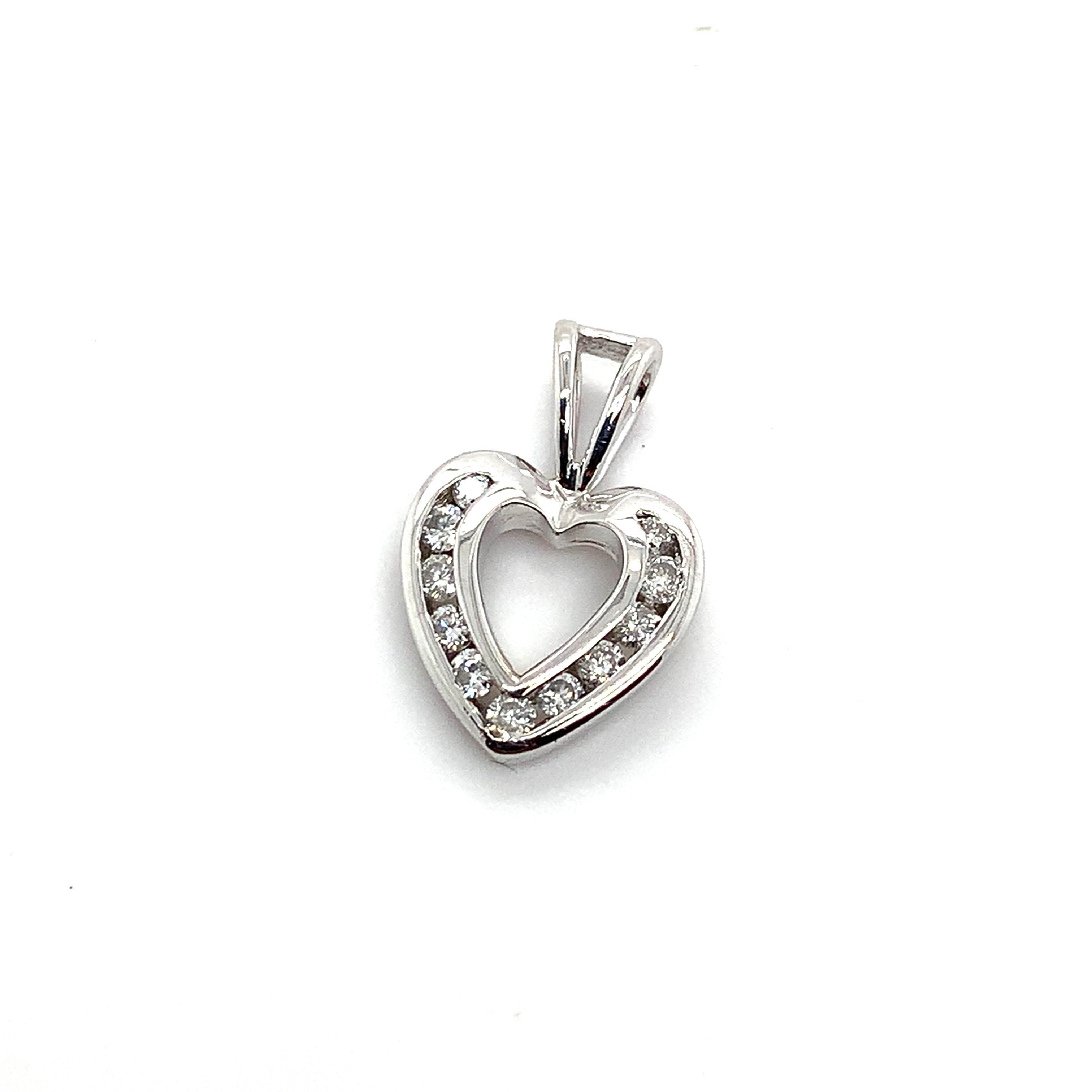 14K White Gold Channel Set Round Diamond Heart Charm Open Loop Bail Pendant