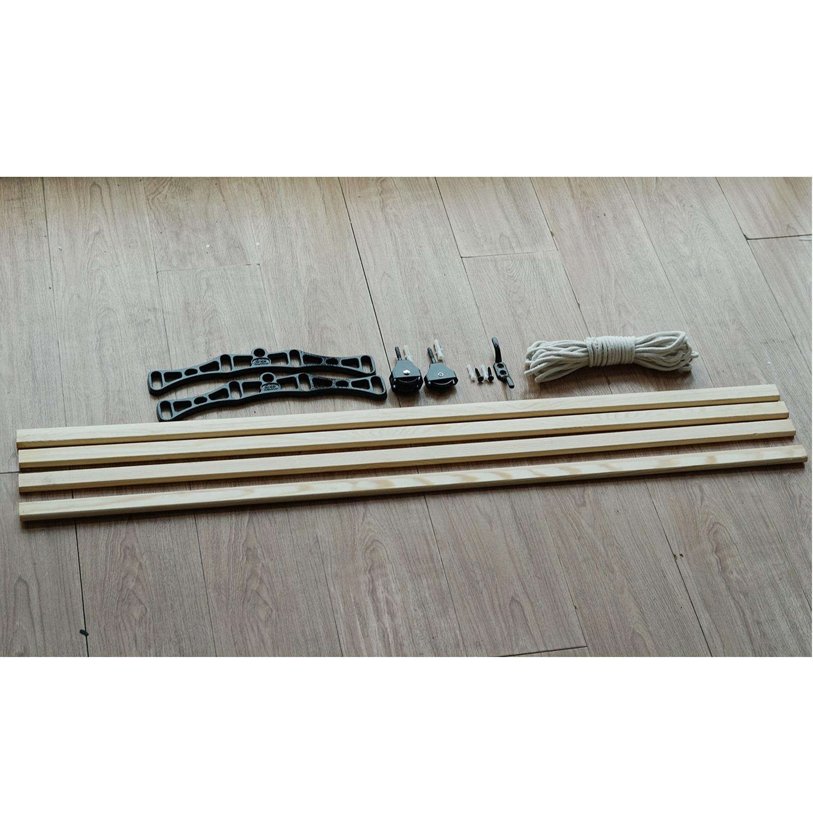 ceiling airer kit includes everything you need: 2 x cast iron ends , 4 x Smooth premium Pine wood laths 120cm