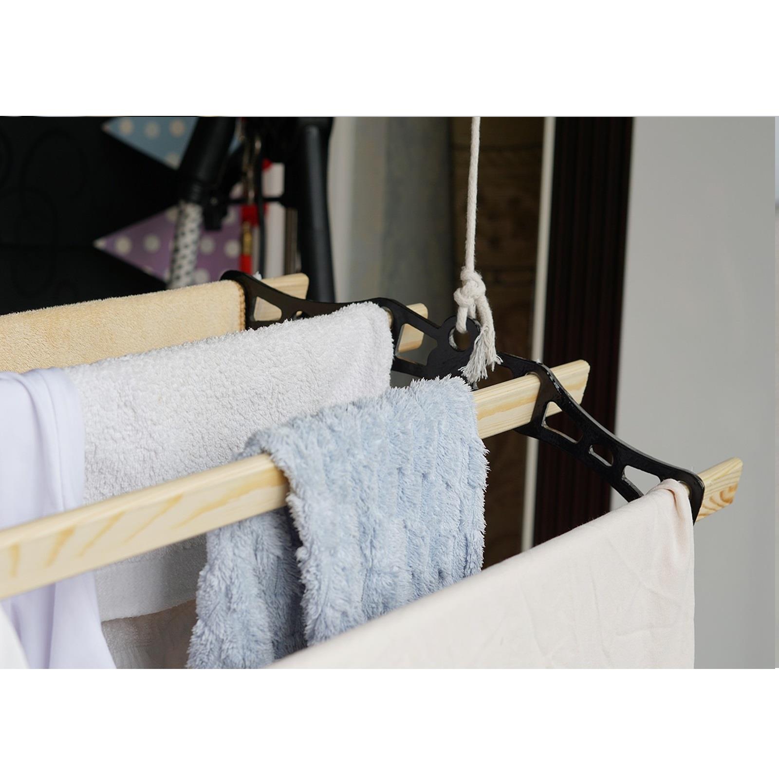 High-Quality Materials: Crafted with high-quality materials, including ethically sourced pine wood and powder-coated cast iron, this clothes airer is built to last. The combination of these materials ensures longevity and reliability.